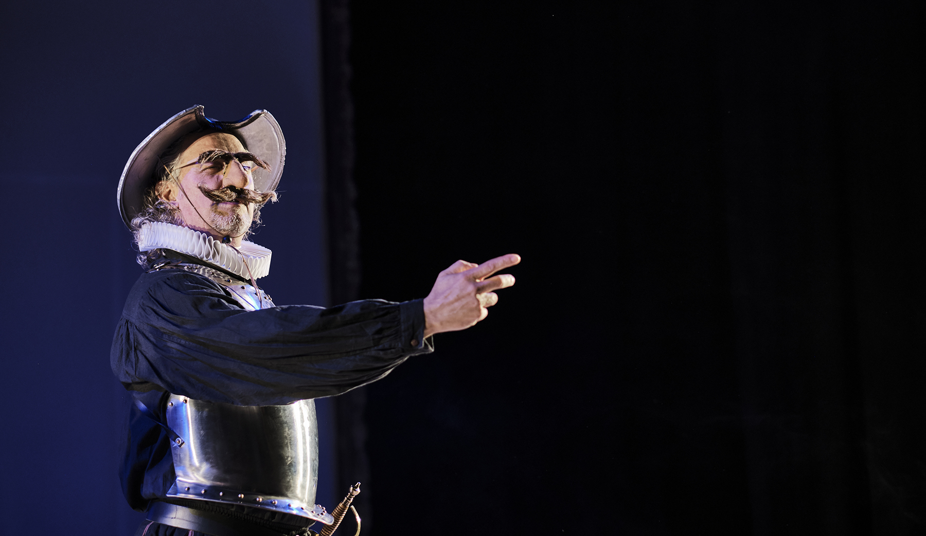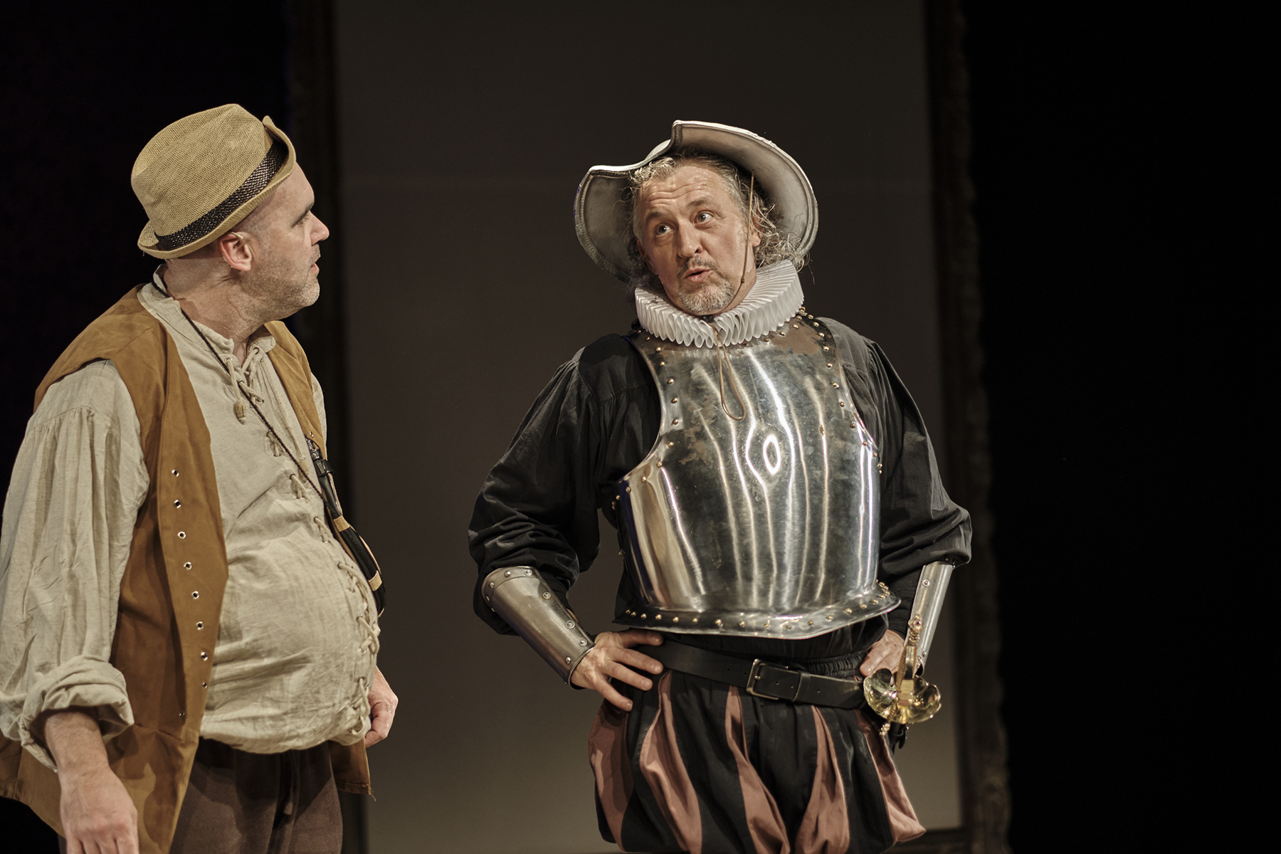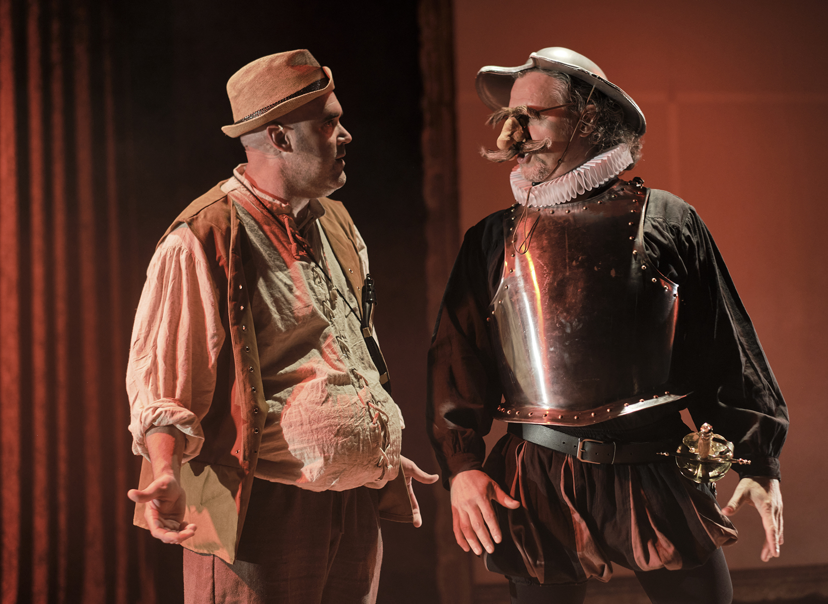 Després d’Un Tal Shakespeare, Marcel Tomàs s’endinsa en l’univers de Miguel de Cervantes per trenar una història divertida, esbojarrada i hilarant al voltant de la relació de dos amics que són la més pura essència de l’amistat. Dos personatges antagònics, amb una mirada molt diferent cap a la societat que els envolta. Un Quixot romàntic i somiador, al costat d'un Sancho Panza pragmàtic i realista. Són els clowns perfectes.