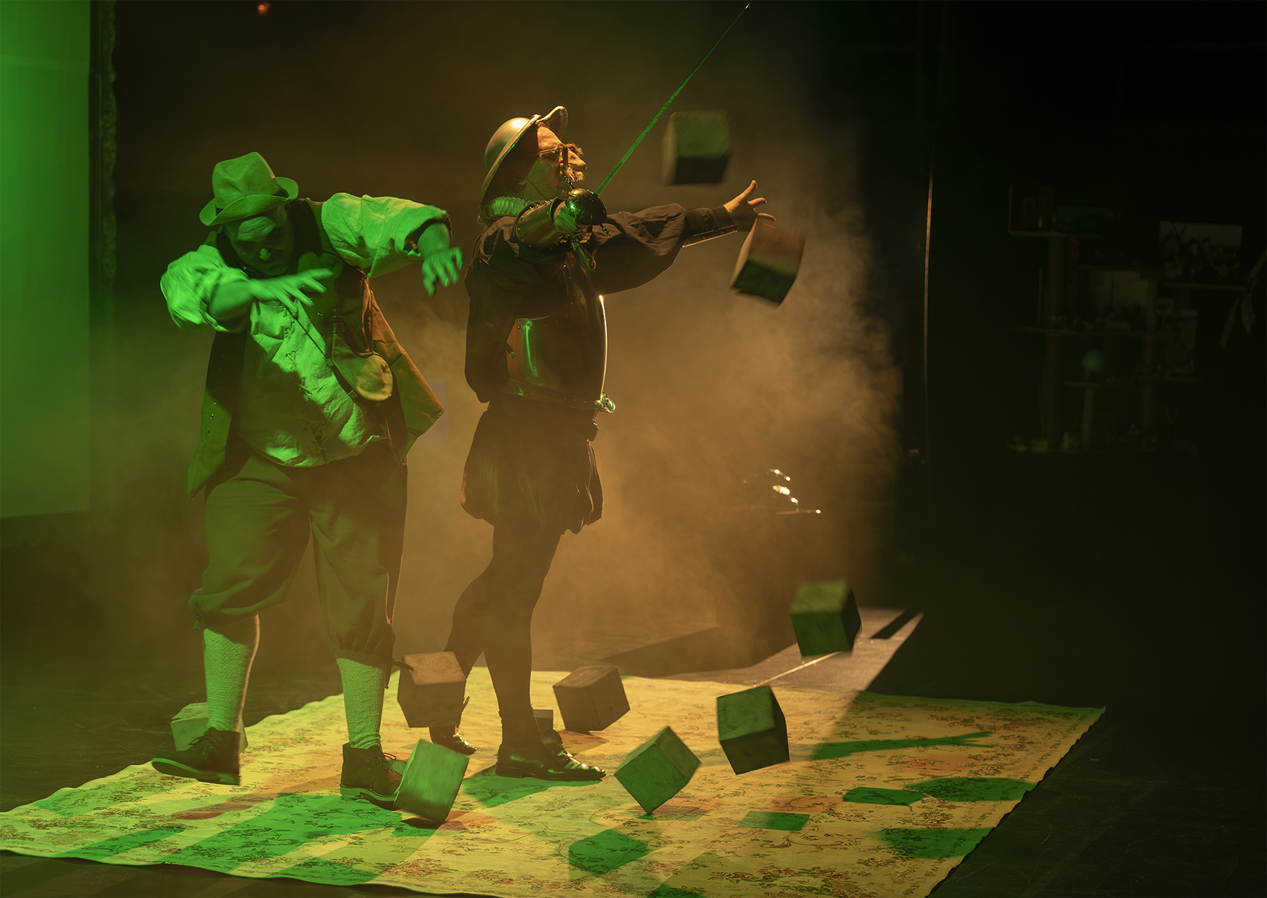 Marcel Tomàs torna als escenaris amb una proposta d’humor i multidisciplinària que pren l’obra del Quixot com a punt de partida per explicar la relació entre dos amics incondicionals, que malgrat les seves diferències, transiten pel món vivint plegats aventures tan esbojarrades com sigui possible. Una obra amb molt sentit de l’humor, una burla pacifista carregada de mala llet.