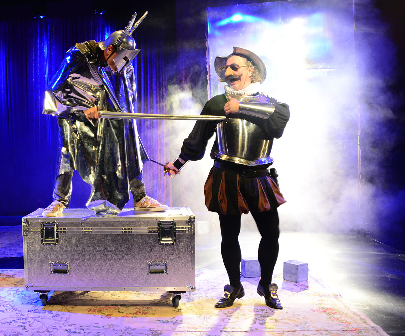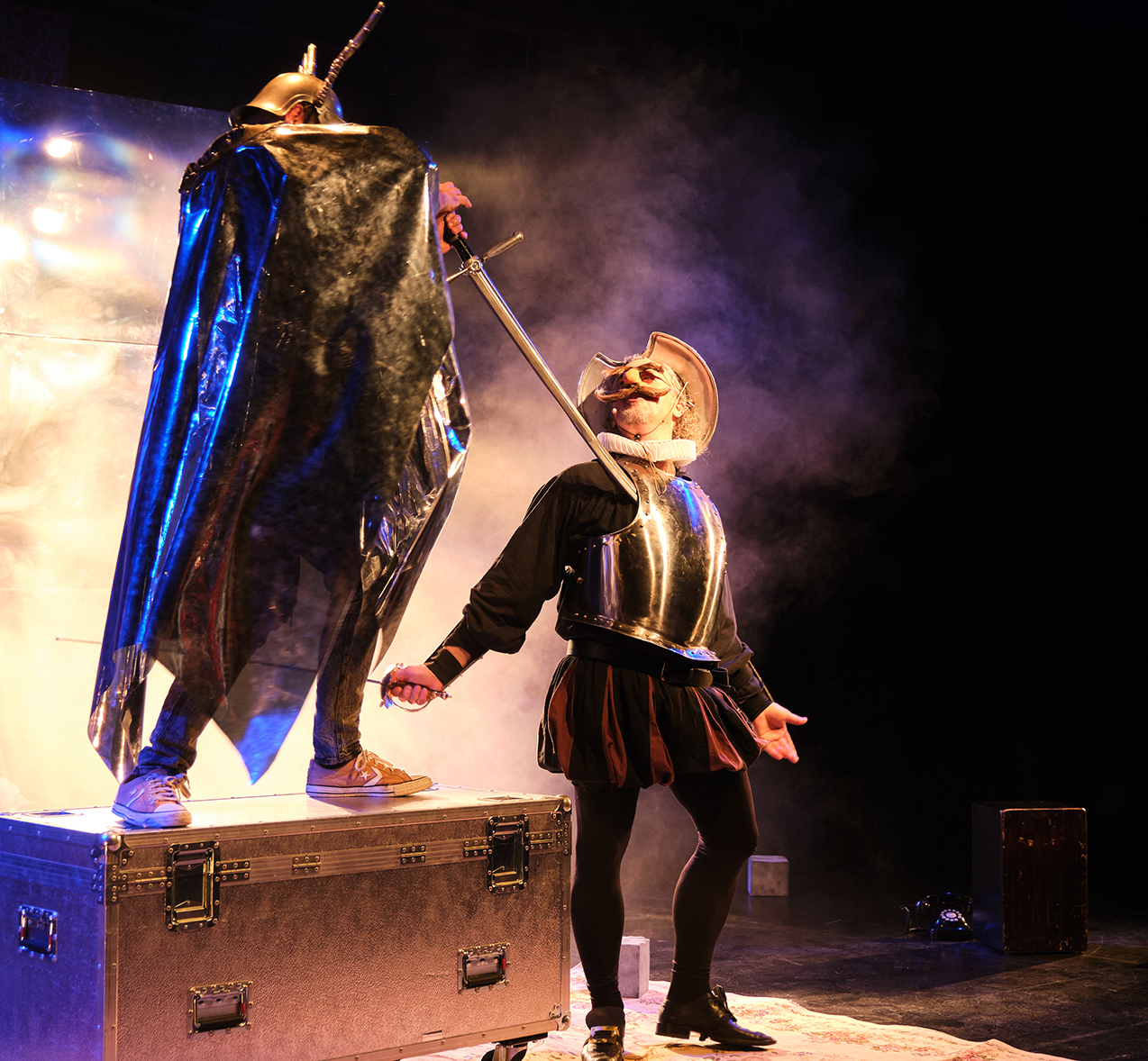 Al llarg de l’espectacle els dos personatges van teixint una amistat amb la complicitat del públic, reinterpretant els passatges més populars de l’obra de Cervantes però contextualitzats a la nostra societat, sempre des d’aquesta mirada excèntrica i divertida de dos clowns contemporanis.
