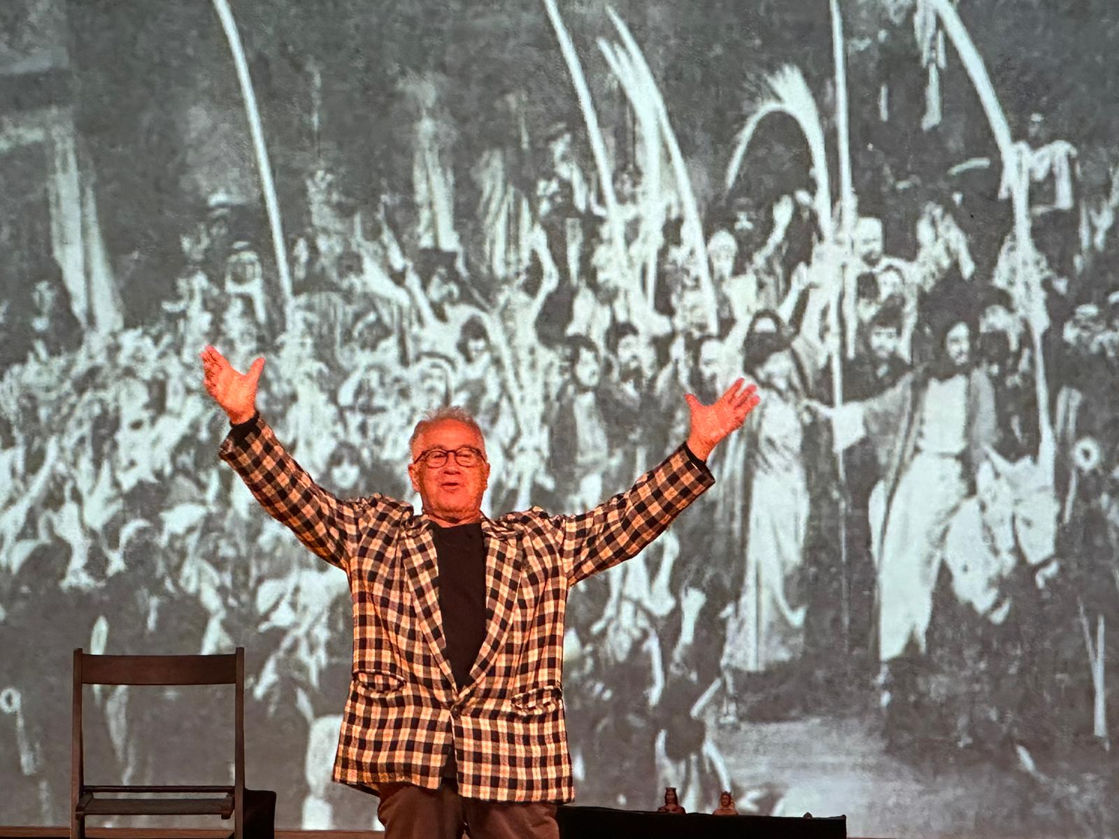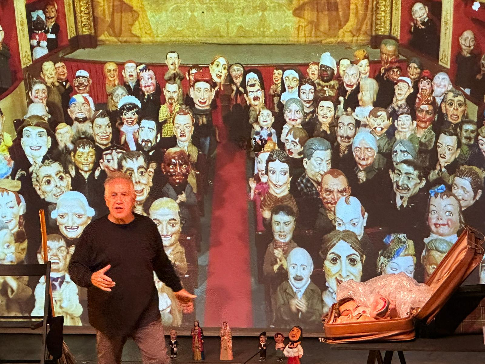 Joan Font, director i ànima de COMEDIANTS durant 50 anys, ens presenta un exercici de virtuosisme teatral unipersonal per conduir-nos a un univers habitat per gegants, capgrossos, màscares, titelles, ombres xineses, fum, vaixells de paper, improvisacions, cerimònies, òperes, anècdotes i records.